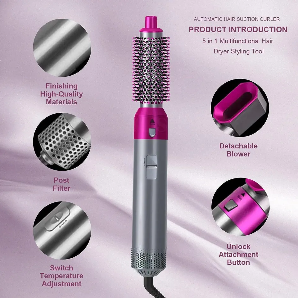 This 5 in 1 Hair Curler Automatic Hair Straightener Electric Hair Styler set makes hair styling a breeze. Achieve perfect curls, sleek straight hair, bouncy volume, or a quick blow-dry – all with one versatile tool.